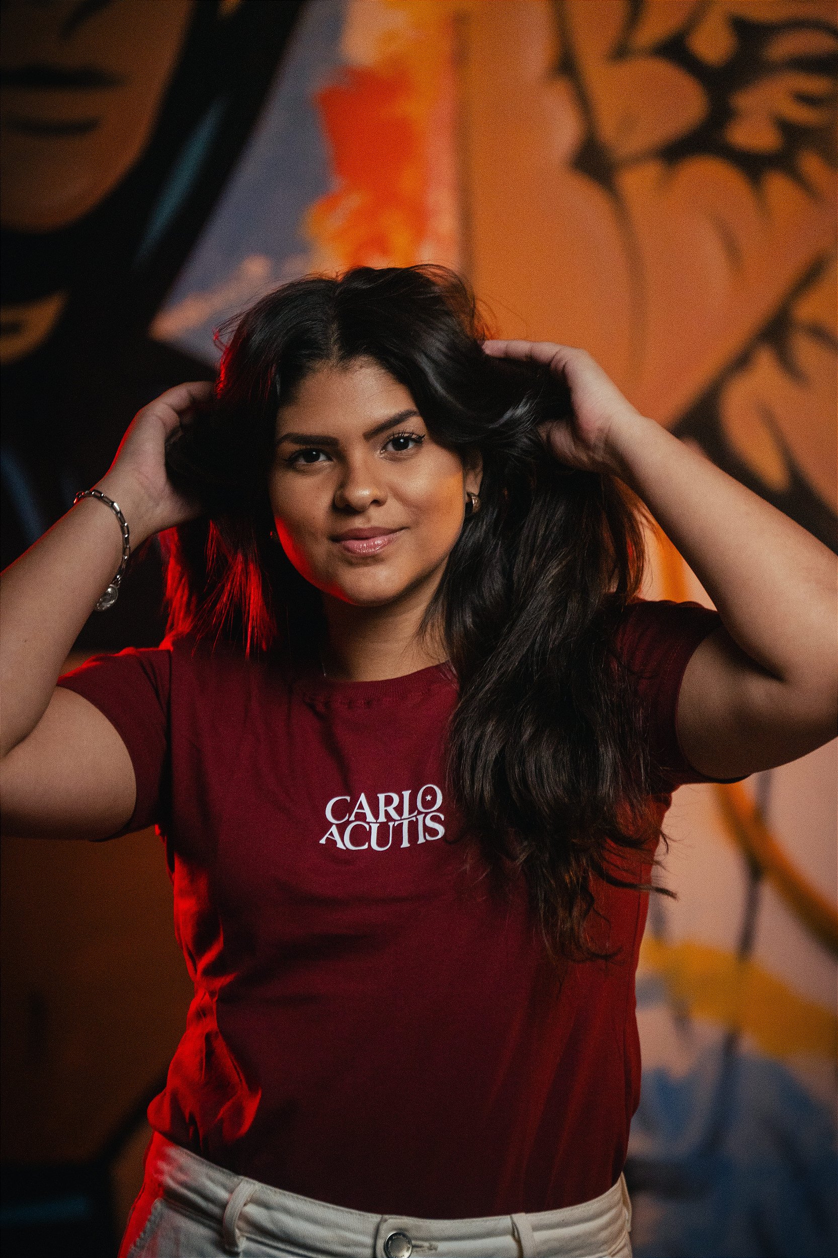 Camiseta Carlo Acutis Long Line Vinho Fraternidade São João Paulo II